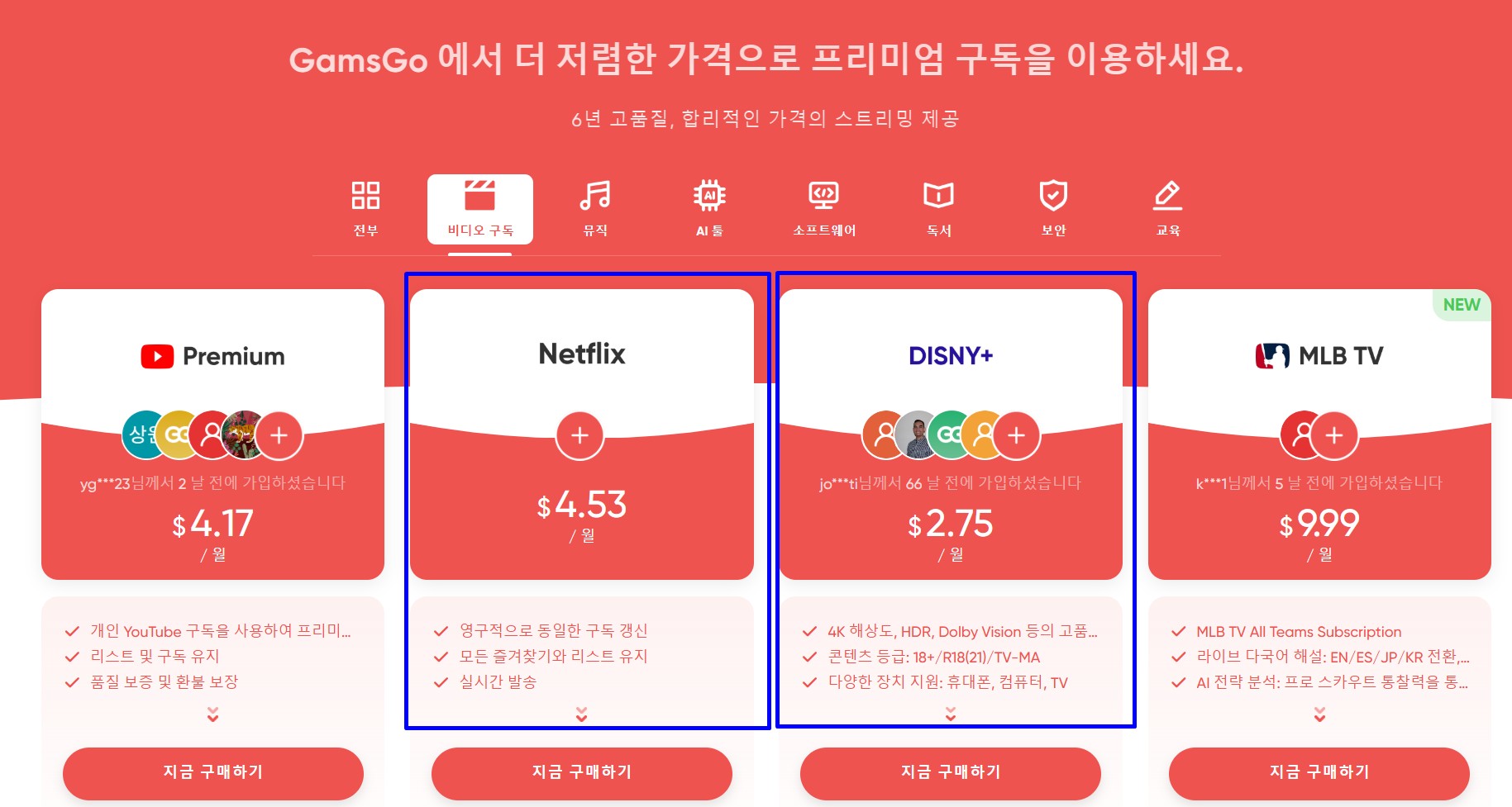 겜스고(GamsGo)는 넷플릭스, 디즈니플러스, 유튜브 프리미엄, 챗GPT 등 유료 구독 서비스를 패밀리 요금제 기반으로 공유하는 플랫폼이다.