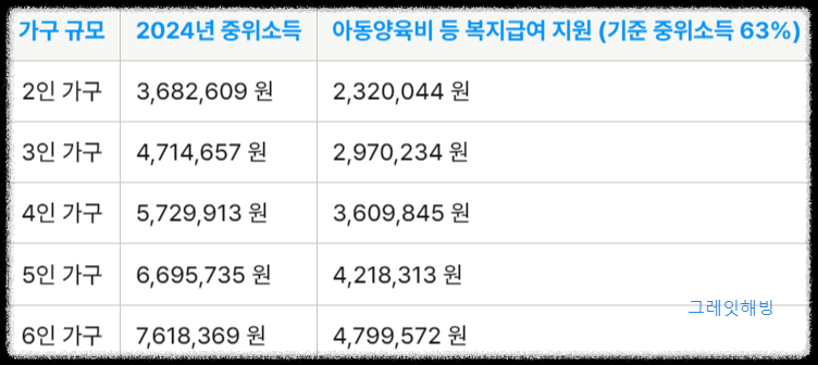 - 가구 소득 인정액이 기준 중위소득 63% 이하인 경우.