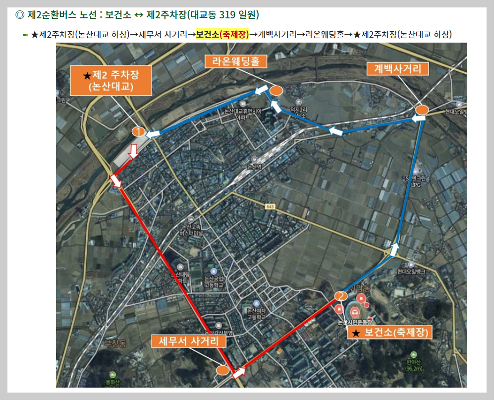 - 교통수단: 논산역에서도 쉽게 접근 가능합니다. 801번 또는 802번 버스를 타면 15~20분 만에 축제 장소에 도착할 수 있습니다.