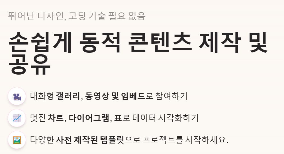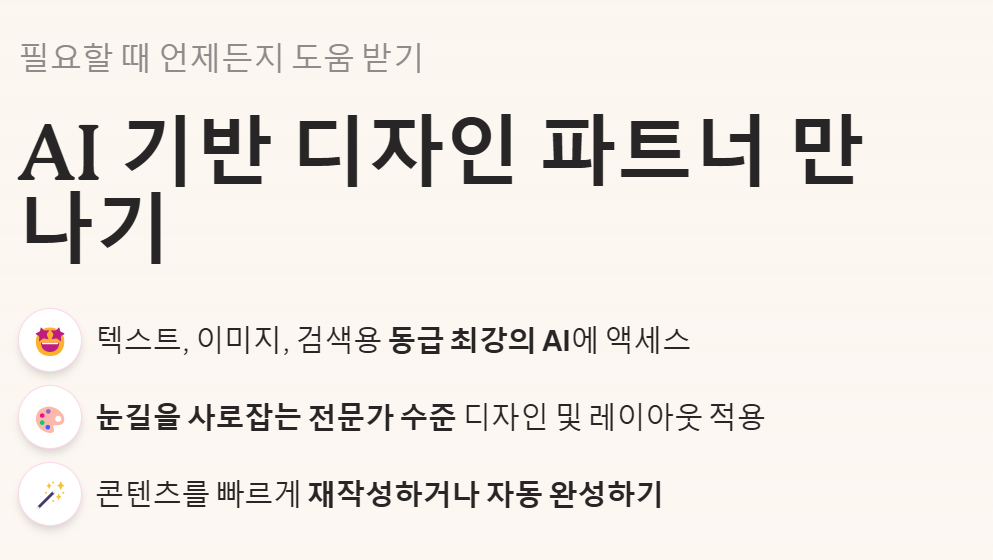 | 템플릿/디자인 자동 적용 | 고퀄리티 디자인, 클릭 한 번으로 완성 |