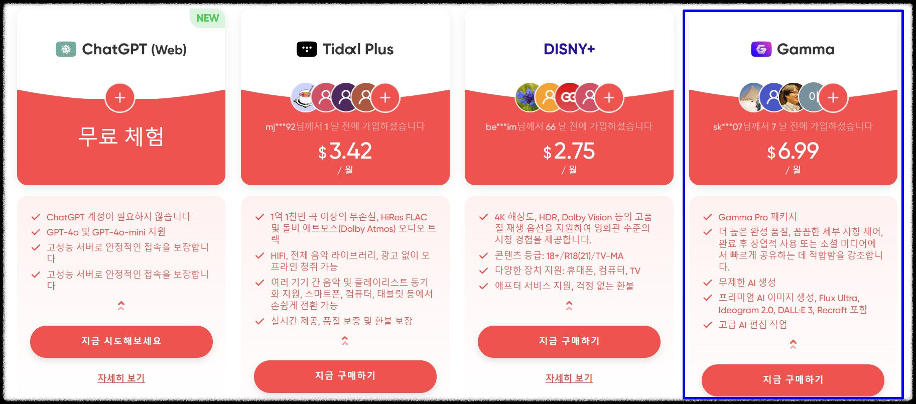 디자인 툴이나 업무 자동화 도구도 이제는 ‘함께 쓰는 시대’예요. 저는 개인적으로 겜스고 덕분에 부담 없이 Gamma를 구독해보고 정착했답니다!